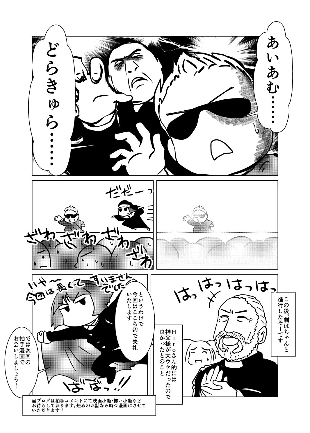 当ブログでは、ホラー映画絡みっぽい短めの面白いお話・怖いお話などを拍手コメントでいただきますと、ちょいアレンジして短めの漫画にして皆さんにご披露!という感じでやっております!