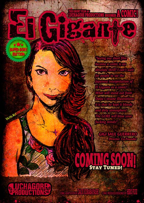 「私たちの短編映画がコミックになるというのは大興奮です。『EL GIGANTE』が日本語の漫画になって、みんなに見てもらえるなんてすごいことです。完成が待ちきれません。Daijuというアーティストの狂ったイラストは突出しています。グッチャグチャの血塗れにやっちまうことを期待します。彼が描くゴアゴアを見たら、みんなはびっくりしますよ」