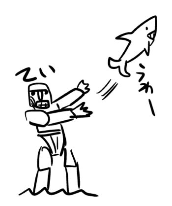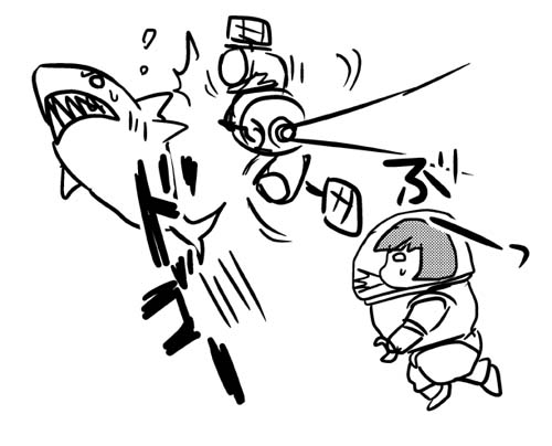 怒りのメガ・シャークの一撃でぶっ飛ばされ