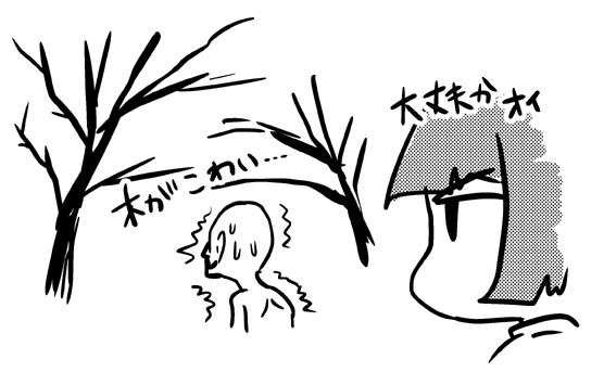 個人の体験が影響する怖さだからだ。例えば子供の頃に森で迷ったことのある人間にとっては、延々と映し出される雑木林が恐怖映像以外の何物でもないように、だ。